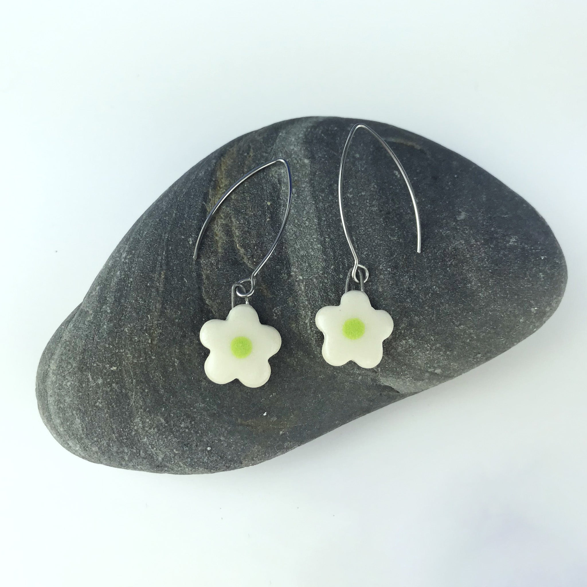 Lightweight porcelain earrings. On elegant 30mm marquise open loop.